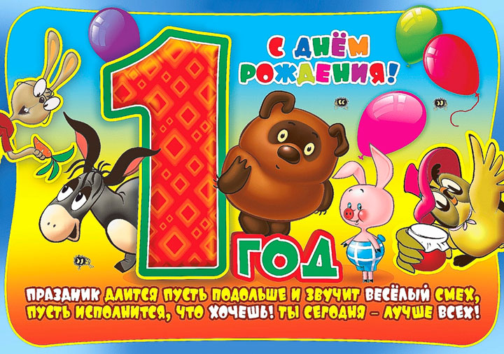 Год так быстро пролетел, Как ребёнок повзрослел! Вам желаем, чтобы он Рос здоровым малышом, Чтоб смеялся, веселился, Всему новому учился, Чтобы слушал папу с мамой И во всем был самый-самый!