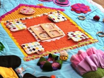 Развивающая доска своими руками для мальчика или девочки может быть полностью мягкой. Такие варианты хороши для самых маленьких – от шести месяцев (для тех, кто уже уверенно самостоятельно сидит). Единственный недостаток заключается в том, что синтетические материалы могут вызвать аллергическую реакцию у малышей.