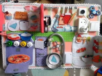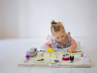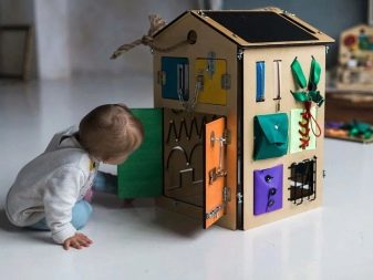 Это развивающая игрушка, представляющая собой небольшое деревянное, фанерное или картонное основание с множеством мелких предметов. Для игры используются замочки, дверцы, щеколды, шнуровки, различные кнопки, розетки, небольшие головоломки, счеты, выключатели, пуговицы с тканевыми петлями и пр. Чем больше разнообразных по цвету и назначению предметов, тем увлекательнее малышу их изучать. Возня с мелкими деталями не только увлекательный процесс для детей, активная работа пальцами развивает мелкую моторику рук, кроме того, подобное развлечение полезно для общего развития.