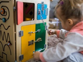 - Бизиборд помогает развить ребёнку усидчивость и логику, поскольку придётся проявить смекалку, чтобы открыть щеколду или завязывать шнурки.