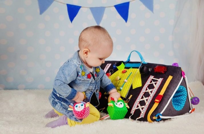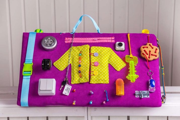 Это развивающая игрушка, представляющая собой небольшое деревянное, фанерное или картонное основание с множеством мелких предметов. Для игры используются замочки, дверцы, щеколды, шнуровки, различные кнопки, розетки, небольшие головоломки, счеты, выключатели, пуговицы с тканевыми петлями и пр. Чем больше разнообразных по цвету и назначению предметов, тем увлекательнее малышу их изучать. Возня с мелкими деталями не только увлекательный процесс для детей, активная работа пальцами развивает мелкую моторику рук, кроме того, подобное развлечение полезно для общего развития.
