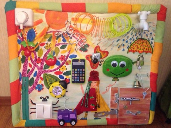 - Бизиборд в виде квадратной или прямоугольной ярко раскрашенной доски;