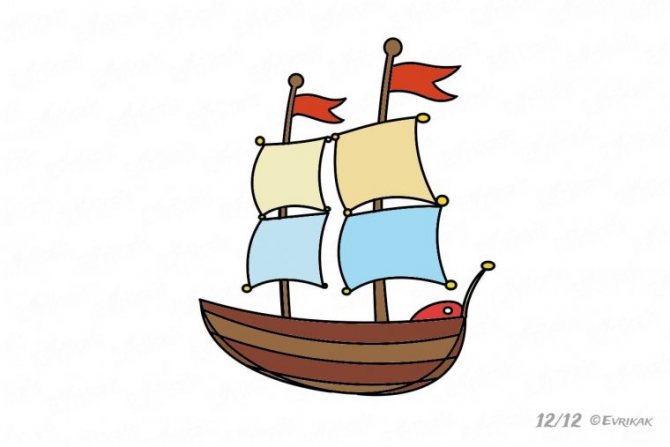 Рисунок готов! Теперь вы знаете как нарисовать корабль с парусом с помощью пошаговой инструкции.