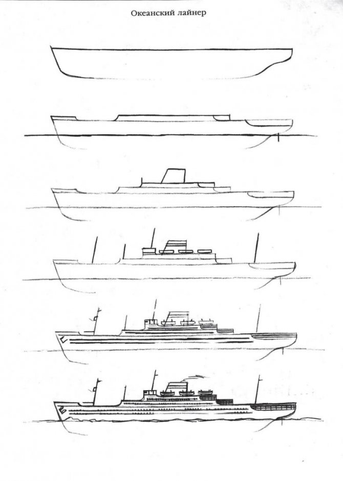 Как нарисовать корабль карандашом поэтапно просто и красиво