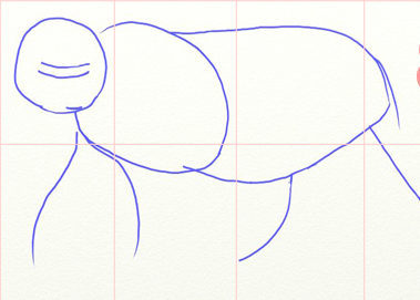 - Шаг 4Добавляем тело животного, его четыре лапы и хвост.