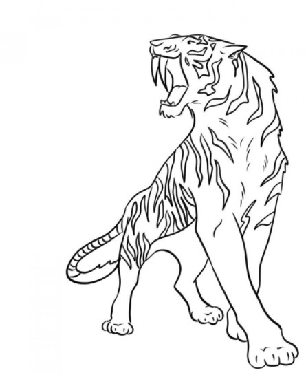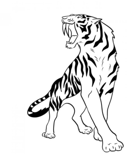Портрет сильного животного украсит комнату. Первоначально осуществляется рисунок карандашом. Наносится контур фигуры. При выполнении головы отдельно наносится изображение открытой пасти с клыками. Их рисуют длинными.