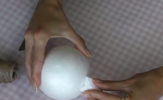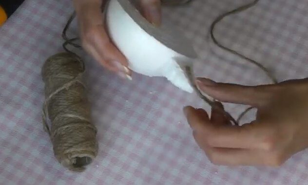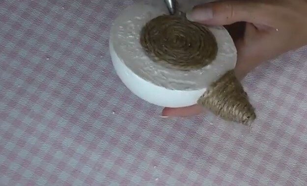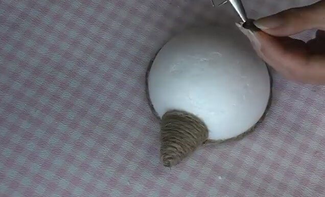 - для мордочки: на кусок пенопласта в виде конуса нанесите клей и намотайте хозяйственные нитки (шпагат);