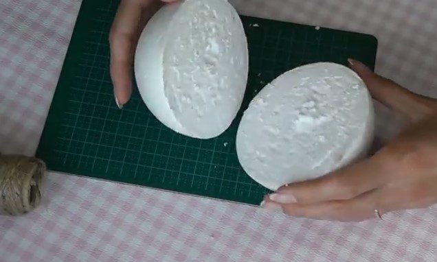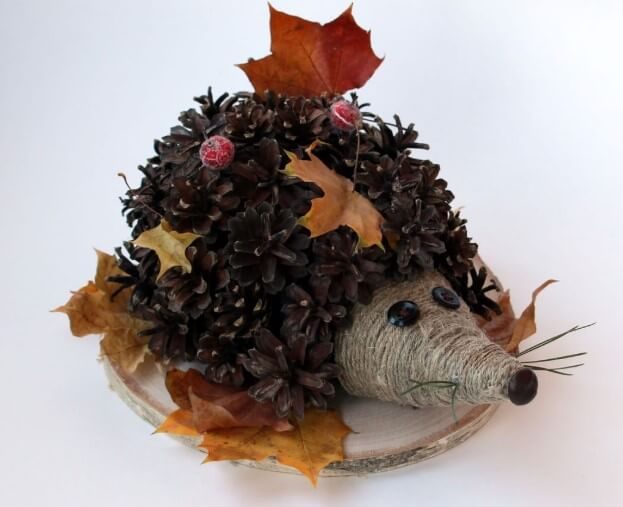- Идея ежа из шишек и пенополистирола со жгутом