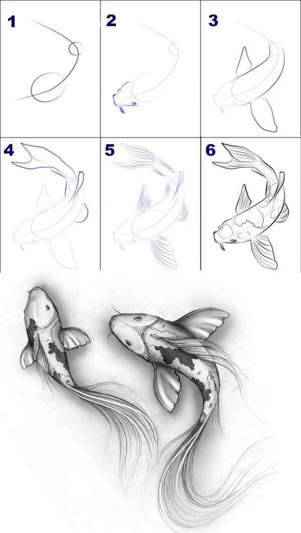 Как нарисовать рыбу карандашом поэтапно?