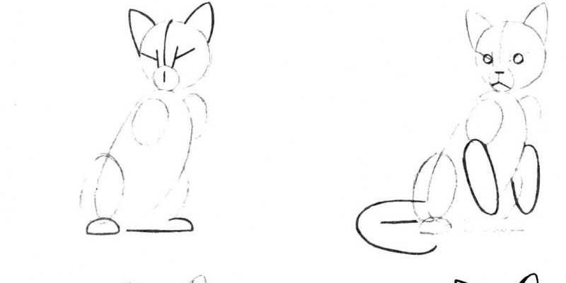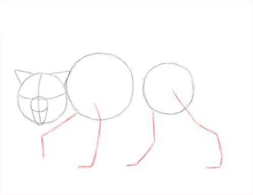 - Переднюю лапу вторую нужно дорисовать, она будет видна не полностью. Заднюю лапу вторую будет видно хорошо, ее также нужно дорисовать.