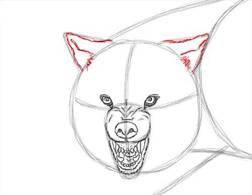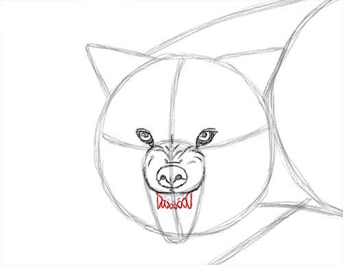 - Детализация мордочки. На ушках прорисуйте шерсть, легкими штрихами нарисуйте скулы зверю.