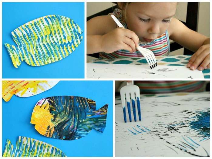А когда ребенок немного подрастет, то можно начинать с ним переходить от каракулей к таким приемам работы, как: