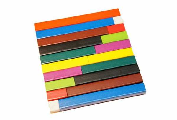 Размер брусочков от 1 до 10 см. По количеству есть наборы попроще, включающих в себя 116 брусочков, а есть наборы традиционно-классические с 241-й палочкой.