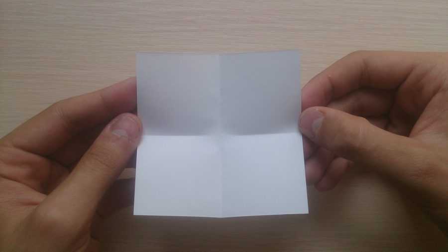 - Взять прямоугольный лист размером 9Х15 см или чуть больше. Согнуть два раза вдоль и поперек, таким способом наметив центры листа.