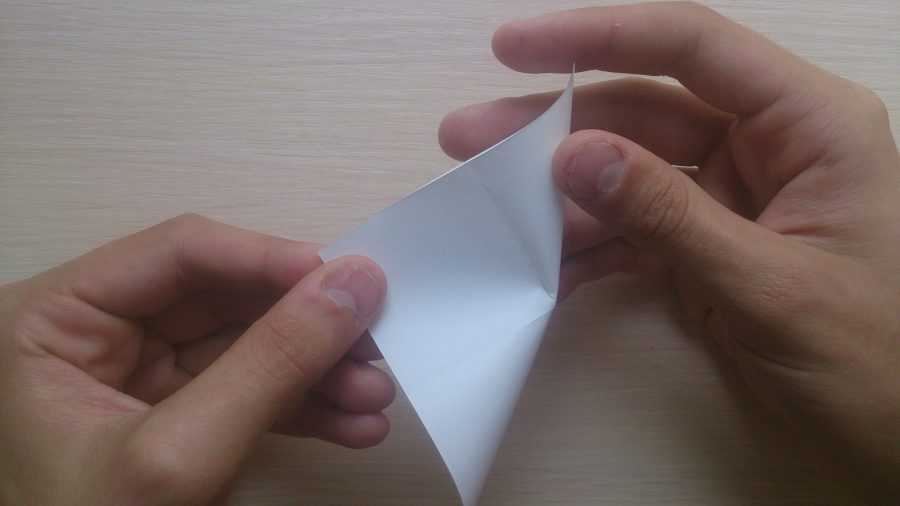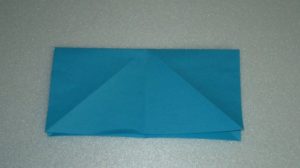 - Сложенный прямоугольник повернуть свободными концами от себя и загнуть углы в центр.