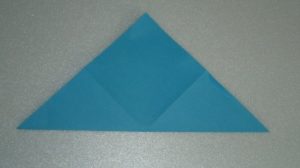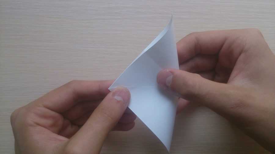 - Два раза сложить квадрат по диагонали, наметив центральные лини от одного угла к другому. Сложить треугольник по одной из линий. Треугольник сложить еще раз пополам.