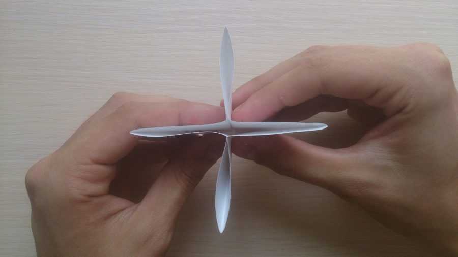 - Вырежьте намеченное, вложите одни крылья в другие и зафиксируйте клеем.