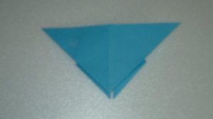 - Работу перевернуть на 180 градусов и верхний угол загнуть вниз, так чтобы его центр раскрылся.