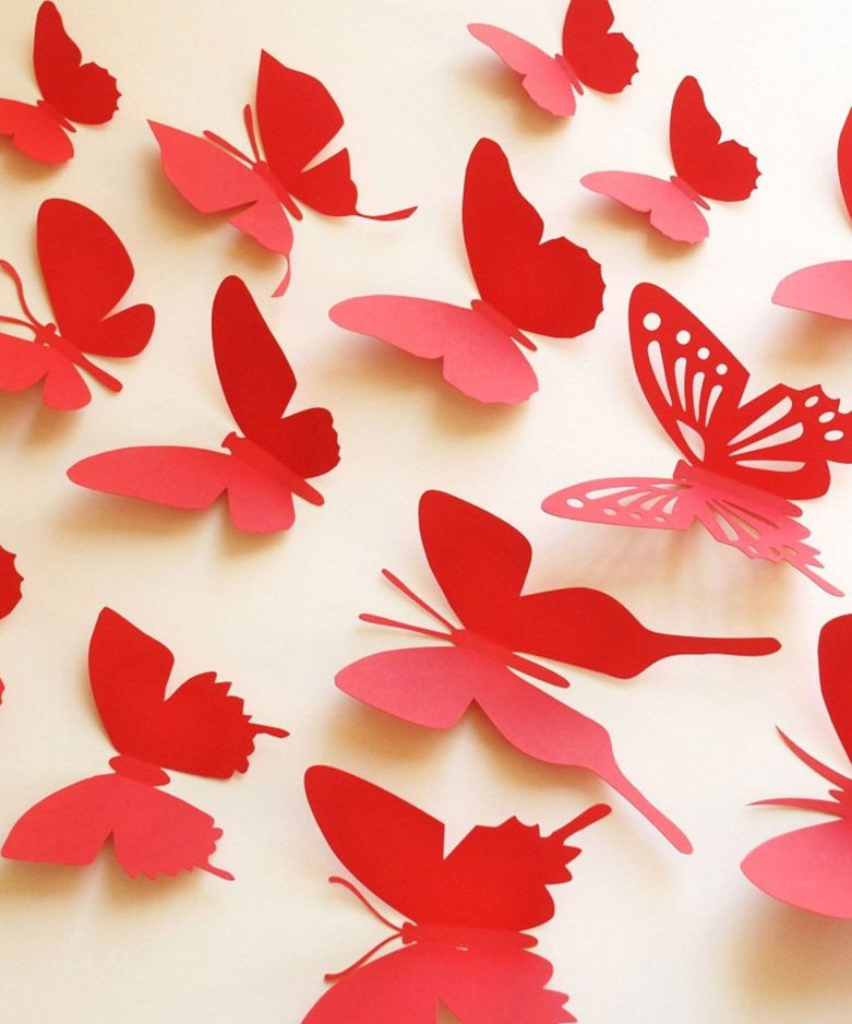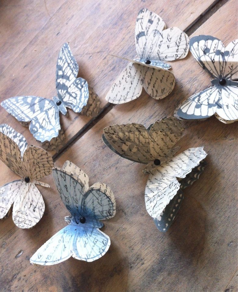 В интернете находите и распечатываете самые разные трафареты бабочек. Для объема лучше всего, чтобы размеры и форма крылышек на шаблонах для одной бабочки были разные.