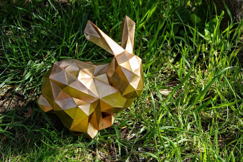 - Стенки изделия должны расправиться. Проверяем зайца на симметрию. Если где-то он не до конца раскрылся, с помощью карандаша аккуратно расправляем вмятины.