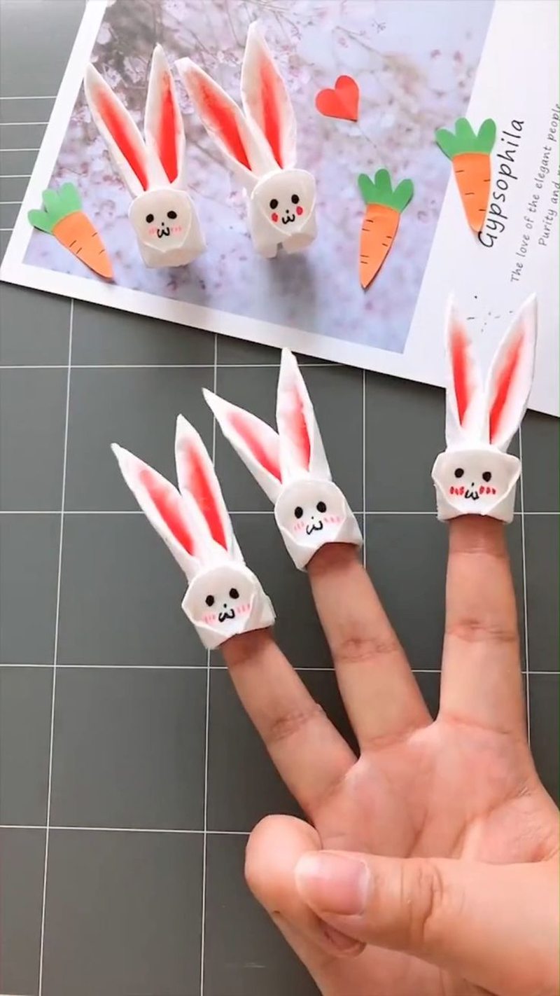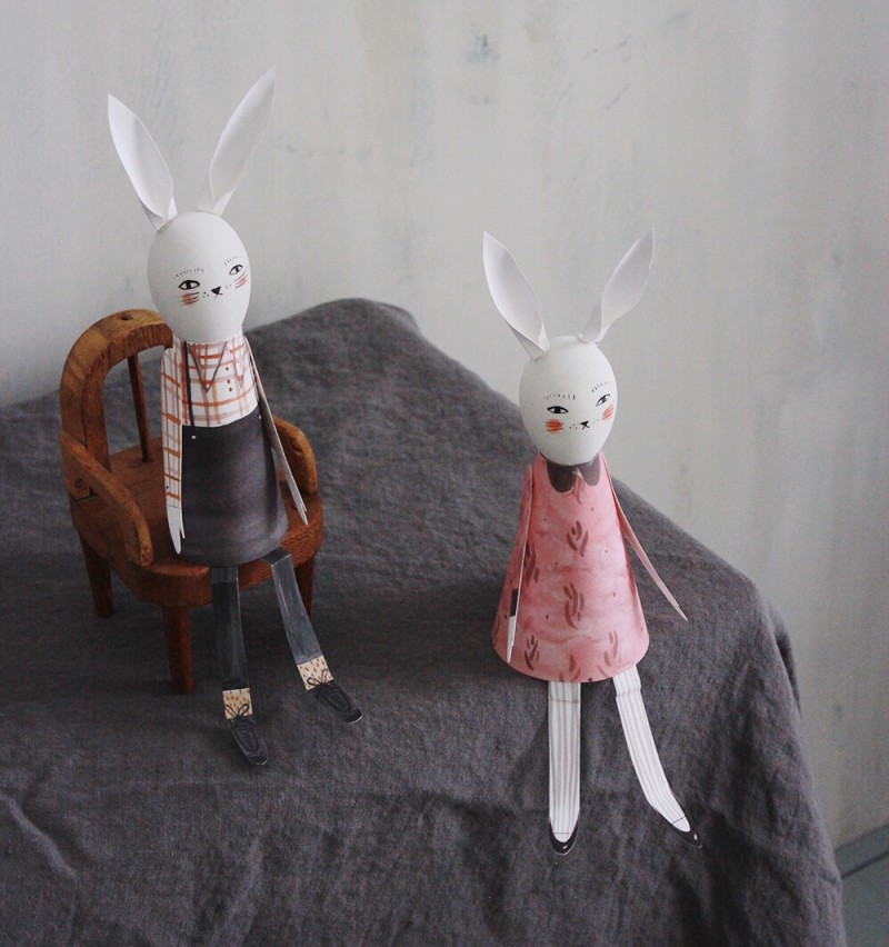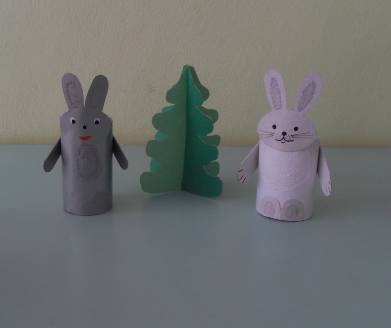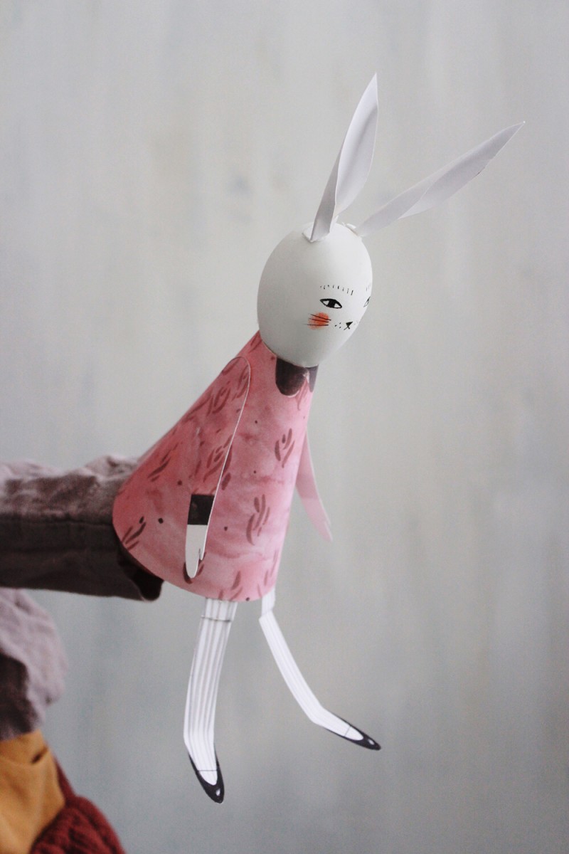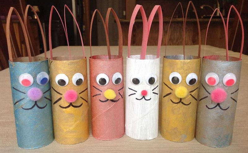 Упаковка от гигиенических средств — прозаично и неуместно на празднике? А вот и нет! Взгляните непредвзято и поймёте, что в ваших руках великолепная заготовка для бумажного кролика. Малышам бывает трудно качественно выполнить основу: это относительно скучно, но сложновато — требуется внимательность и тщание. В итоге вся работа вкривь и вкось. Готовые картонные втулки могут выручить: они плотные, но податливые, сразу имеют правильную геометрическую форму. Материал ничего не стоит родителям. Можно свести к минимуму этап конструирования и сразу переходить к созданию персонажа. А это уже игра.