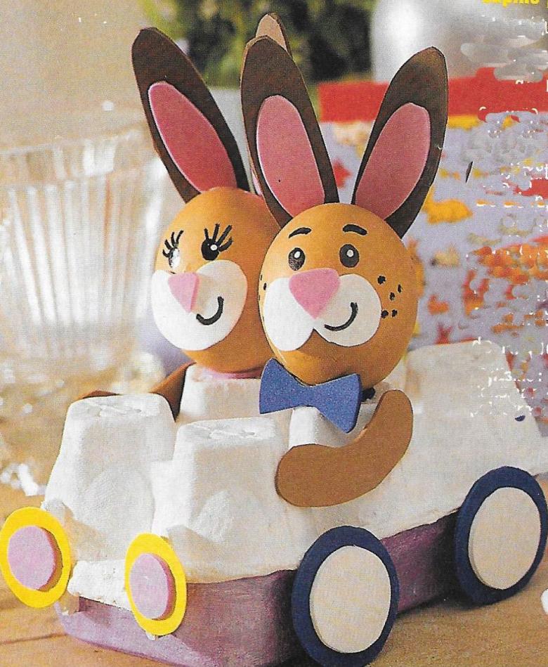 - Чтобы поделка выглядела красивее, ее можно украсить в соответствии с собственным вкусом: покрасить колесики, на кролике нарисовать цветочки или узоры и повязать на него бантик и т. д.
