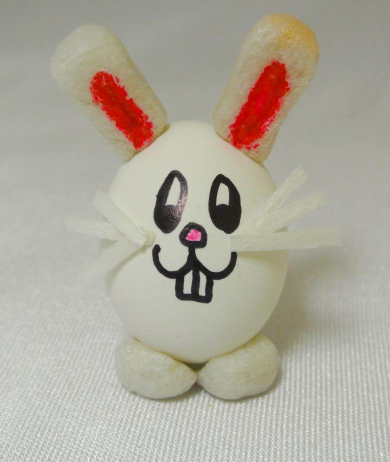 Пока основная часть фигуры сохнет, можно приступить к остальным частям. Следом вырезаются и склеиваются лапки и ушки зайчика. К тому моменту, основная часть фигуры уже высохнет, на нее можно будет клеить остальные части.